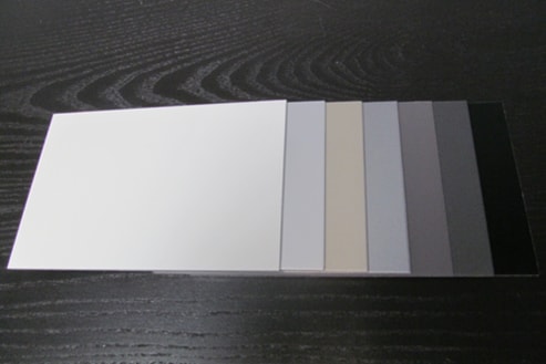 - Standard with a pre-painted 0.8mm D-MAX aluminium material, alloy 5754H42 and pre-painted PVDF type Kynar 500-70% finishes such as Duranar XL with a choice of 7 colours (0.8mm) available in stock: white RAL 9016, Jupiter RAL9006, neptune, alpha centauri, charcoal, rigel-2 and black RAL9005.